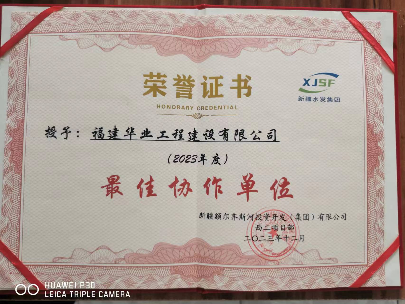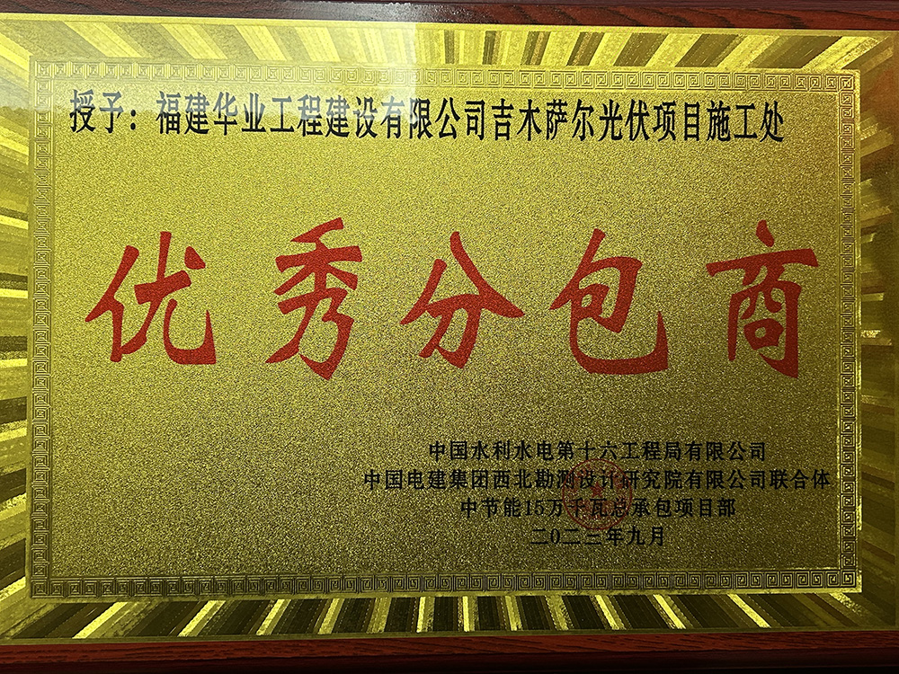 公司荣获“2025年度优秀分包...